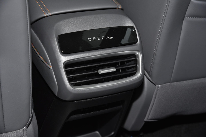 深蓝S05内饰设计兼具实用与品质感。车厢采用简约化设计语言,提供热浪橙、星岩灰双色内饰方案,中控台布局规整,实体按键与旋钮操作便捷。车内大面积覆盖软质皮革与翻毛皮材质,双拼色搭配与细节缝线处理营造出层次分明的视觉效果,门板、方向盘及座椅等部位均采用精致包覆工艺。15.4英寸中控屏集成智能语音交互、车载互联及远程控制功能,搭配50英寸AR-HUD抬头显示系统,可实时投射行车数据、导航指引、歌词等信息,并支持自定义显示组合,提升行车安全性与科技体验。